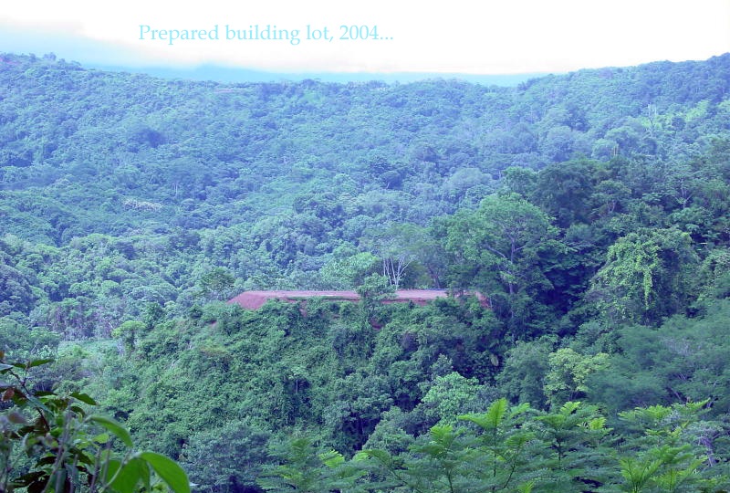 This is the east view of the prepared building lot, as offered for sale in 2004. I envisioned a house perched on the plateau with no grass to mow, no leaves to rake, a kind of penthouse apartment floating above the jungle canopy.