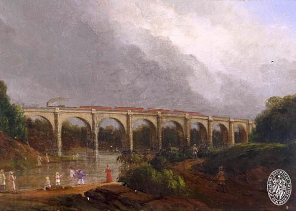 This is John H.B. Latrobe’s 1840s oil painting of The Thomas Viaduct. Masterfully envisioned and engineered by his brother Benjamin, it stands today as the world’s oldest curved arched railroad bridge, and is still in use.