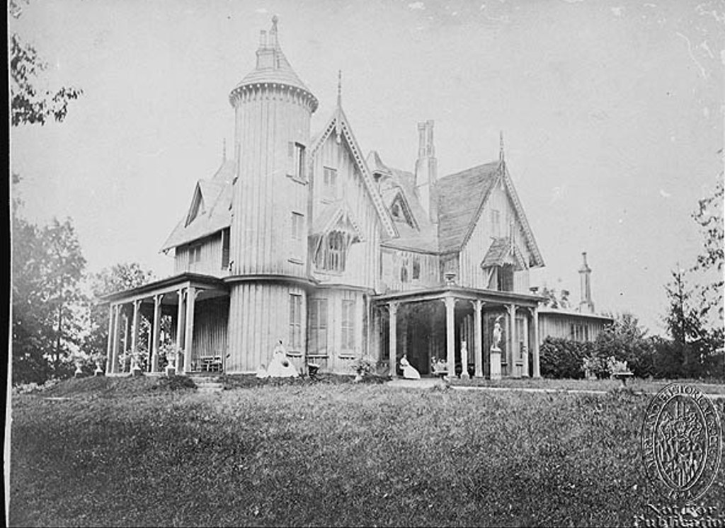 This is Fairy Knowe as it existed in 1860. It burned to the ground in the late summer of 1921. An earlier version of Latrobe’s summer house, low key and classical in form, was the subject of a glowing article published August of 1845 in The American Farmer. The original carriage barn still stands, transformed into a comfortable residence.