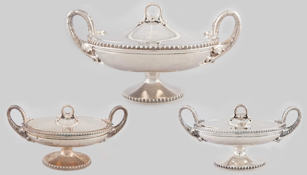 Had I learned that the tureen – on the lower left and awaiting restoration – had once been used on special occasions in my own family’s dining room, I’d most certainly have melted! π₯³ The good news is that the three matching silver tureens are now re-united and on display at Maryland Center For History and Culture.