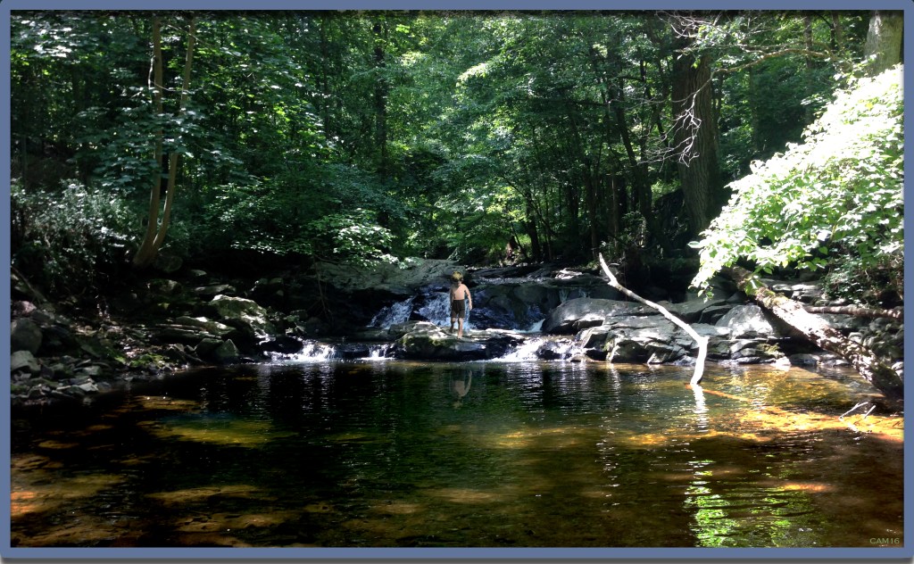This is Dobbin Pool, into which I have Photoshopped a lone child contemplating his image reflected in the rippling waters. My personal memories of exploring Rockburn Branch are depicted here. We kids on The Hill simply referred to it as “The Creek”, which Indigenous Peoples would have enjoyed for untold thousands of years.