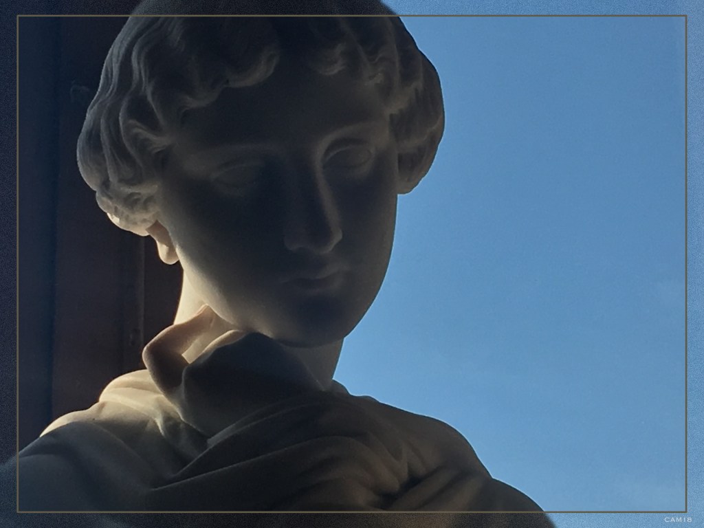 One pic stands out in particular. I was in the Louvre Museum, soaking up culture every which way but loose. Descending one wing's grand staircase, I passed a marble bust gently touched by afternoon sunlight. The window was full of clear blue sky, and I was the lucky one to be in the right place at the right time.